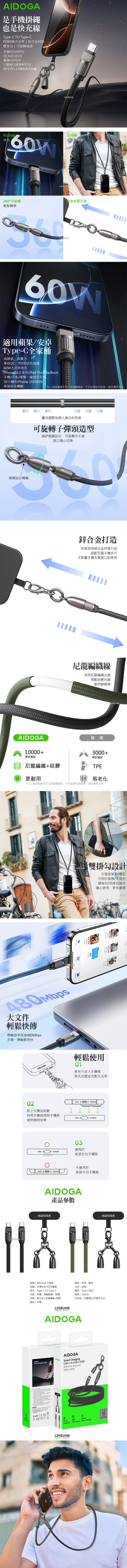 ●PD60W大功率|鋅合金材質|雙掛勾|可旋轉接頭